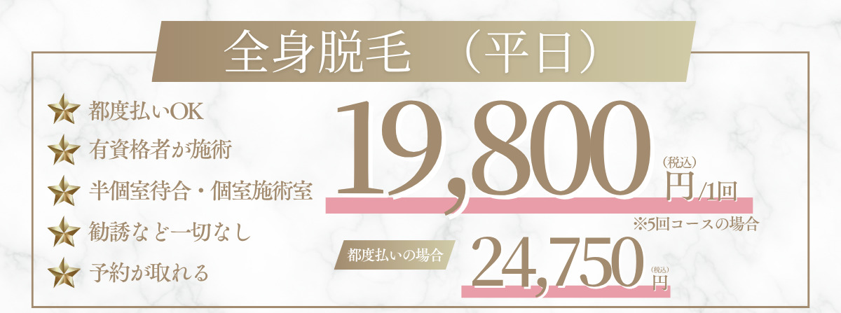 | 1回 | 19,800円 | 24,750円 |