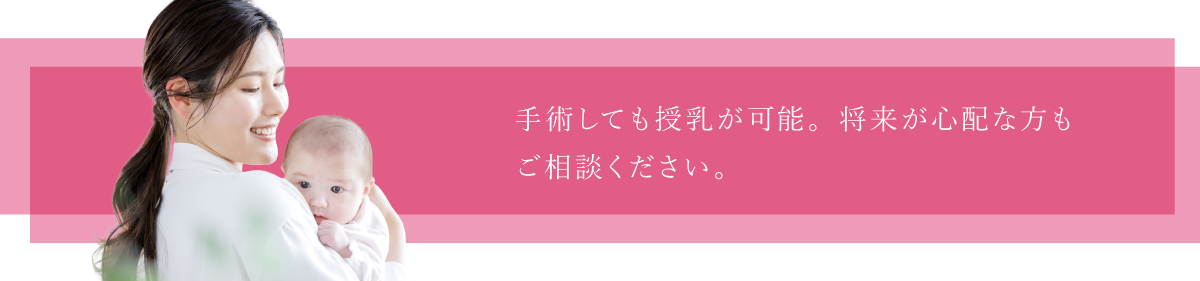 手術自体は乳管(母乳が通る部位)を温存し、傷つけることがないように行います。しかし、縫い縮める過程で瘢痕が形成されることで、乳汁が出にくくなる可能性もあります。ですので、妊娠出産を今後控えている女性は、控え目な切除量とし、あまり小さくしすぎない方が良いでしょう。