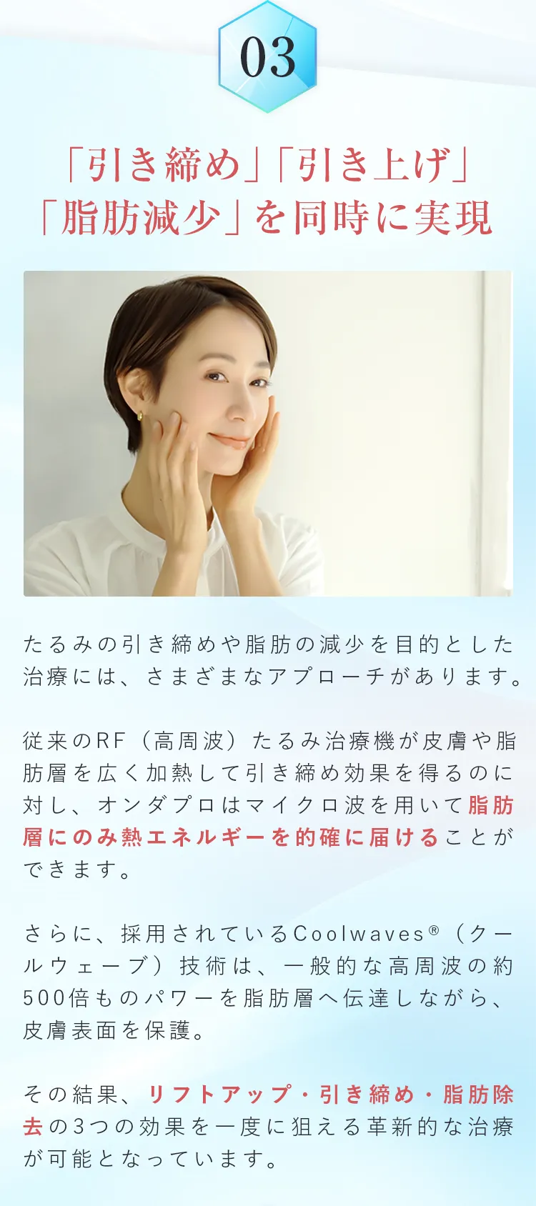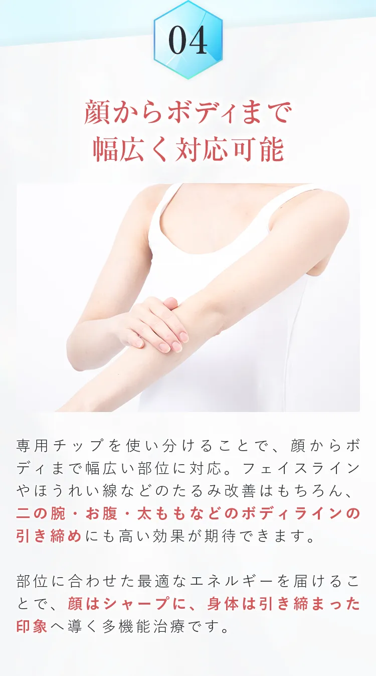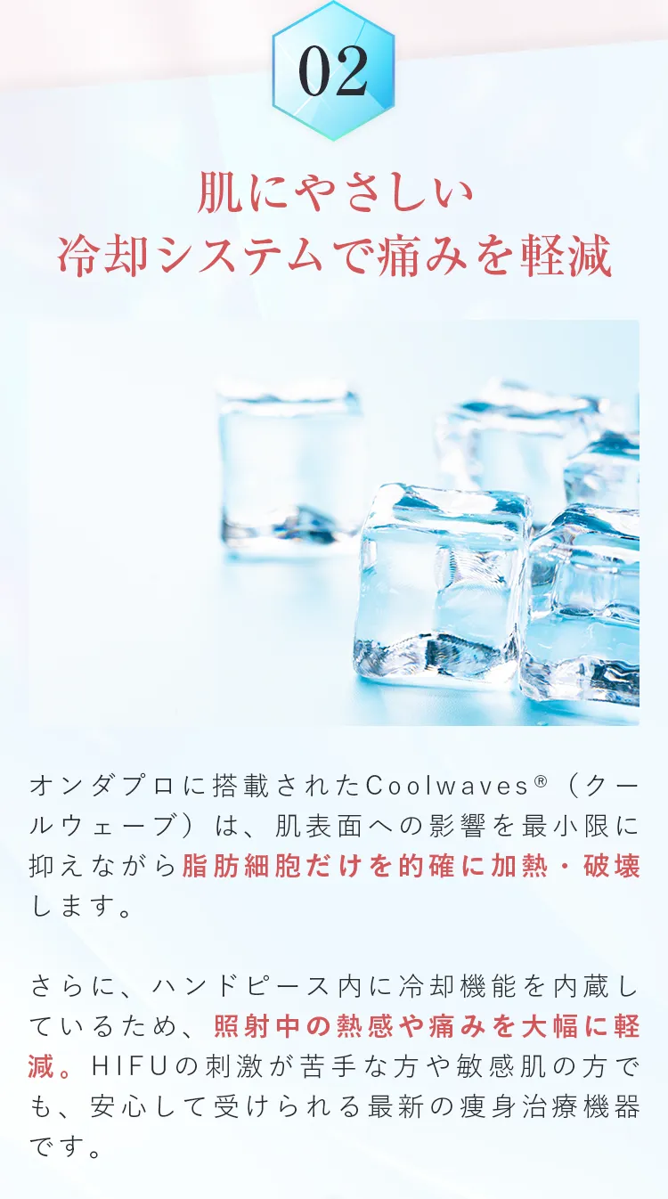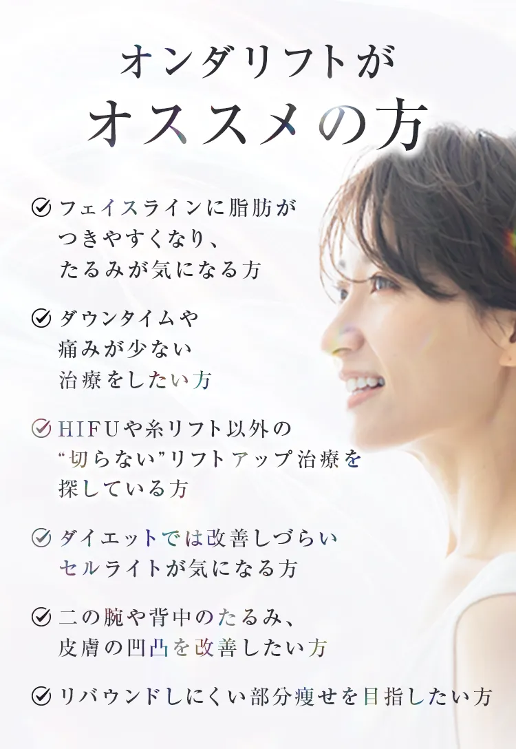 ※オンダリフトボディの同日施術は、中範囲は最大2部位まで、大範囲は1部位までとなります。