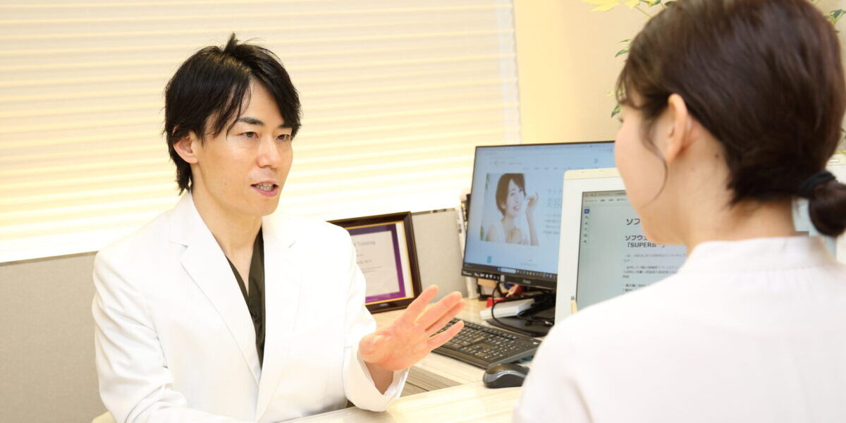 経験豊富な医師が患者様の状態を診断し、ご希望を伺いつつ、二重まぶた埋没法が合っているか、どのような二重幅が向いているかなどをプランニングします。併せてリスクの説明などもさせていただきます。