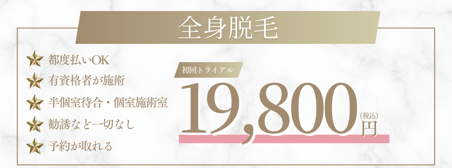 当院では、脱毛専用の施術室を完備し、経験豊富なスタッフが多数在籍しているため、スムーズにご予約いただけます。